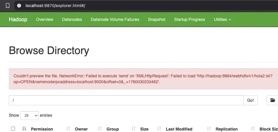 Este error se debe a que no tenemos expuesto (abierto) el puerto 9864en nuestro contenedor.