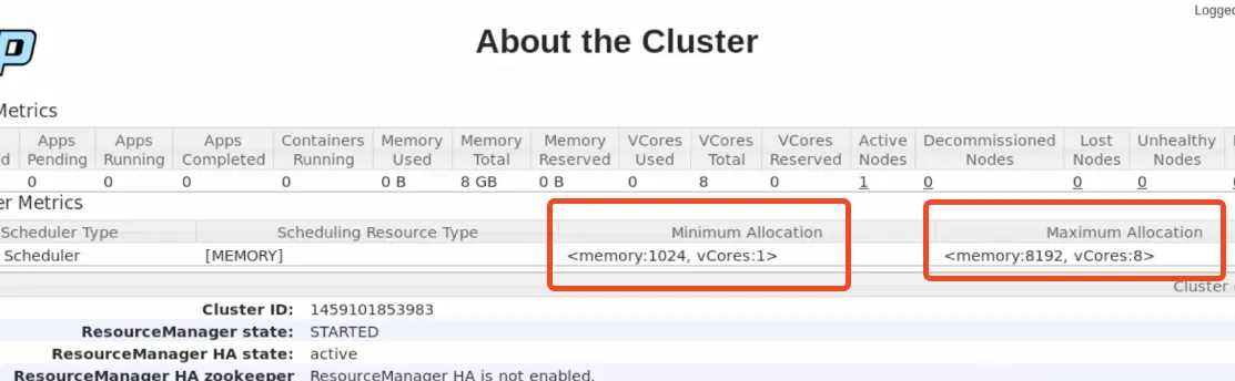 Section titled “Web admin YARN”Se puede acceder a la web para ver la configuración del yarn a través del puerto 8088.