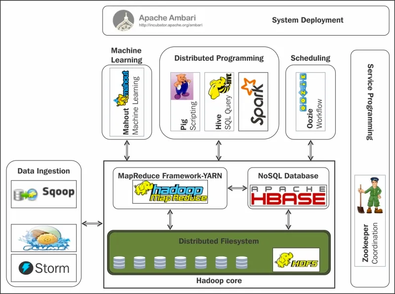 - Almacenamiento de datos: Los resultados de las consultas se almacenan en HDFS o en otros sistemas compatibles con Hadoop, organizados en tablas y en formatos específicos para un almacenamiento eficiente.
