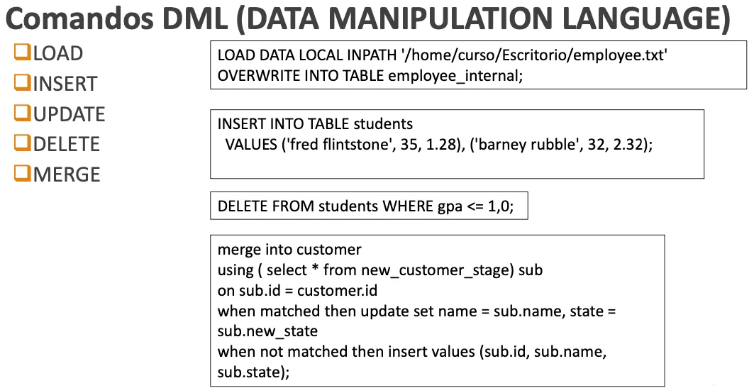 LOAD DATA INPATH 'ruta_hdfs' ...(Sin LOCAL):- Origen: Una ruta existente en HDFS.