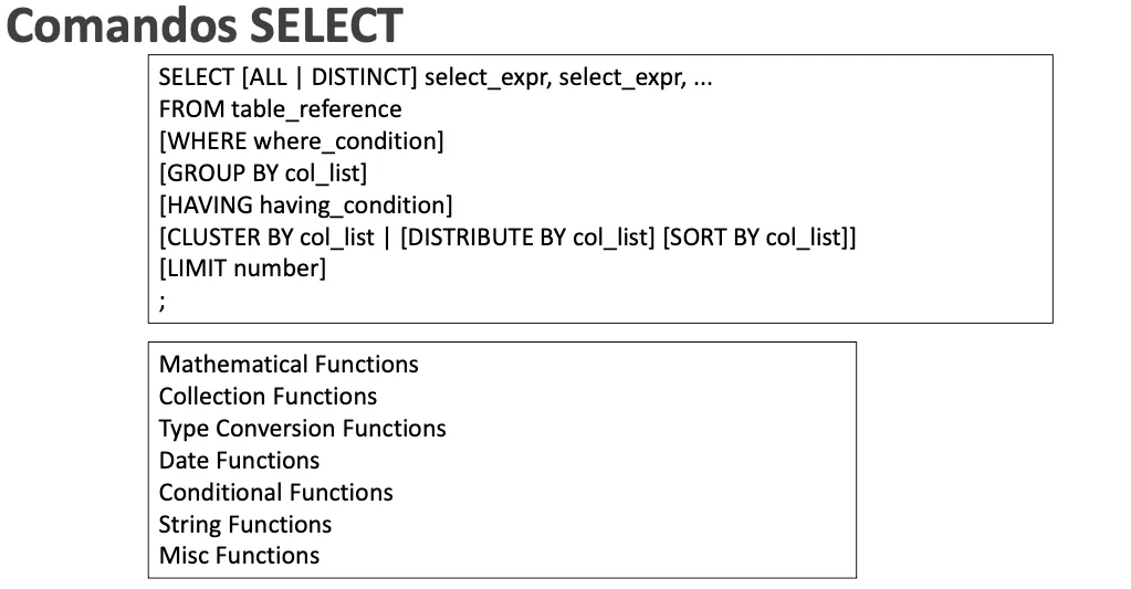 - HQL (Hive Query Language): Los usuarios escriben consultas en un lenguaje similar a SQL llamado HQL para expresar las operaciones que desean realizar en los datos.
